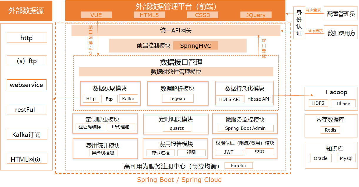 支持外部數(shù)據(jù)的解析、轉(zhuǎn)換、存儲,滿足各業(yè)務(wù)部門的數(shù)據(jù)使用需求。